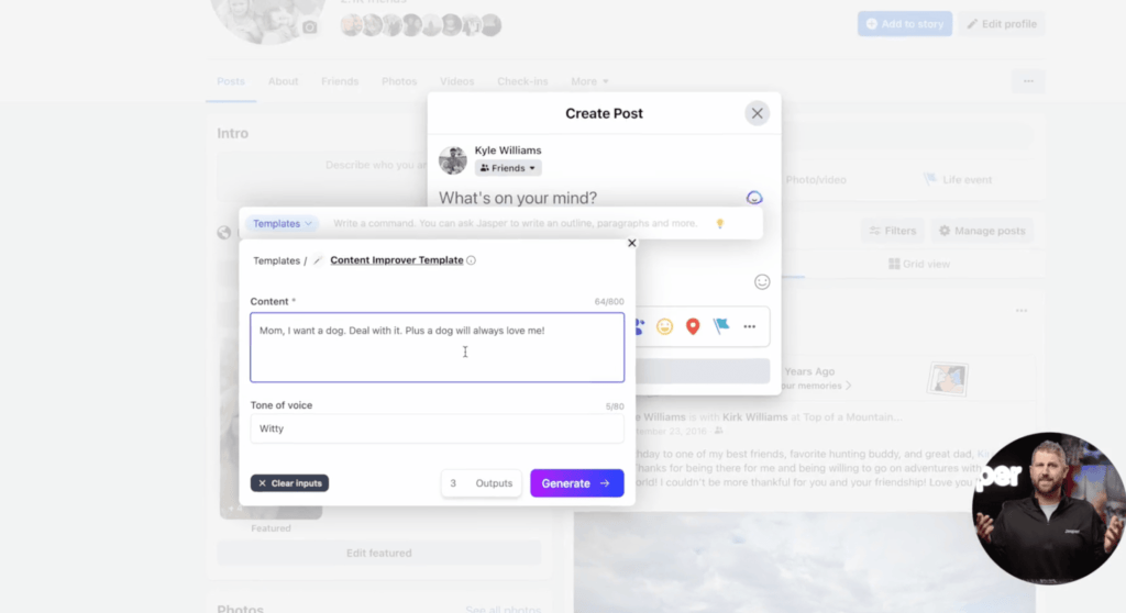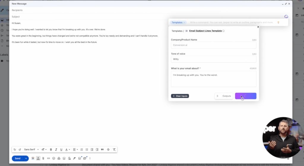 - Collaboration Tools: Jasper.ai includes features for team collaboration, including the ability to assign tasks, leave comments, and track progress.