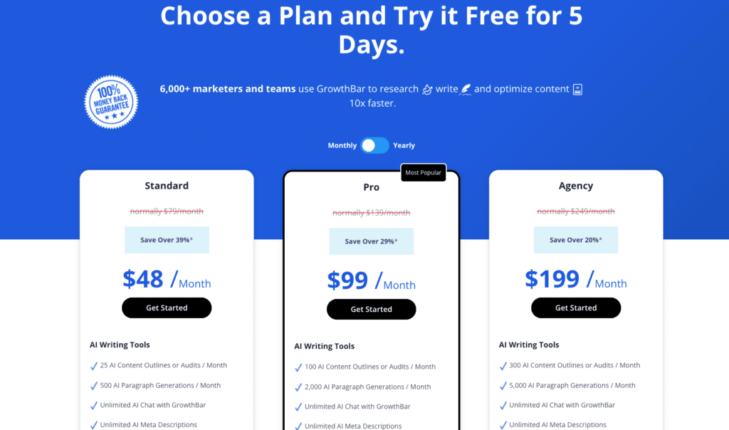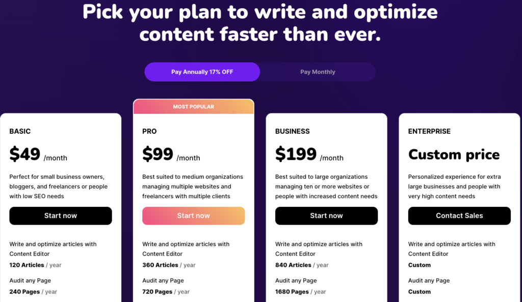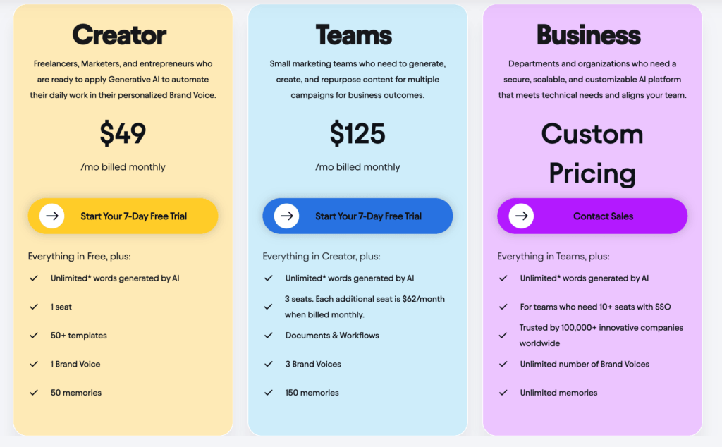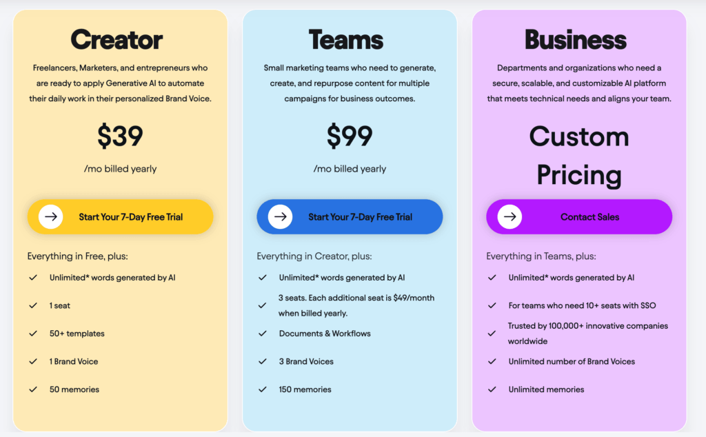Jasper.ai seo tools offers a variety of pricing plans to suit different business needs and budgets:
