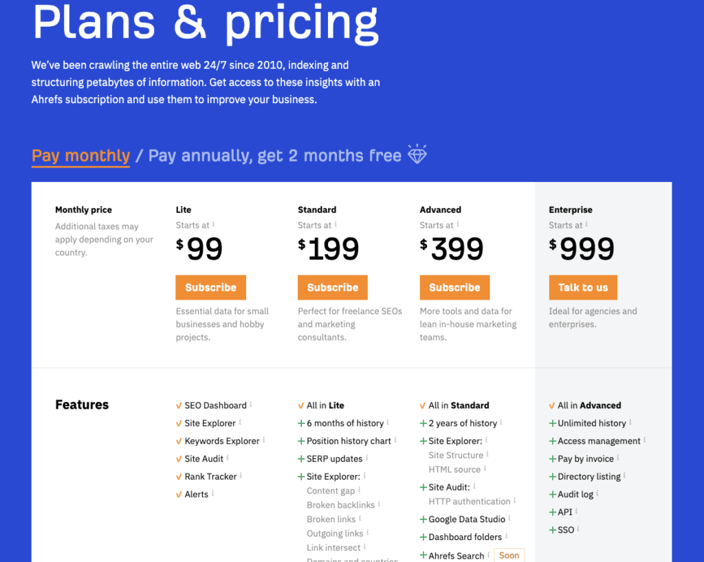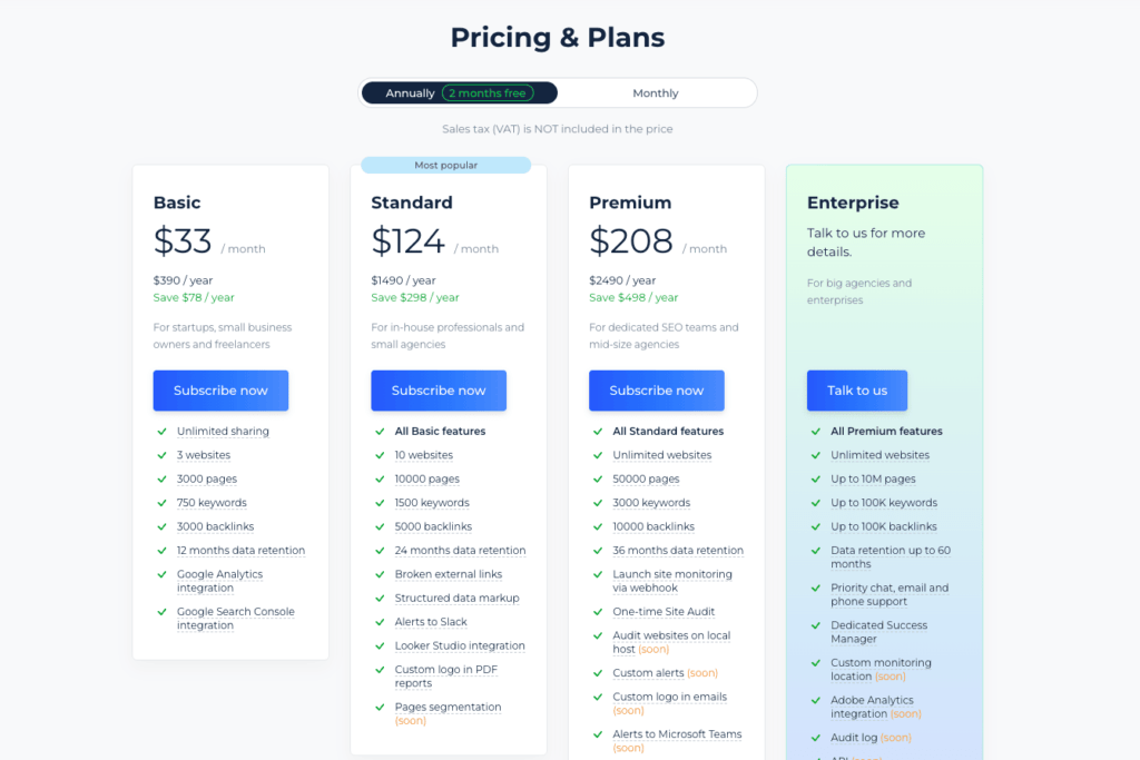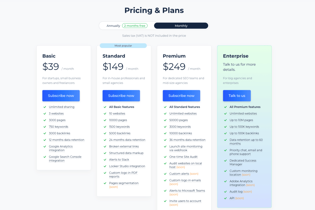 - Enterprise Plan: Serpstat also offers $499/MO pricing for their Enterprise plan, which is tailored to the specific requirements of large enterprises and agencies. This plan provides enhanced scalability, advanced features, and dedicated support.