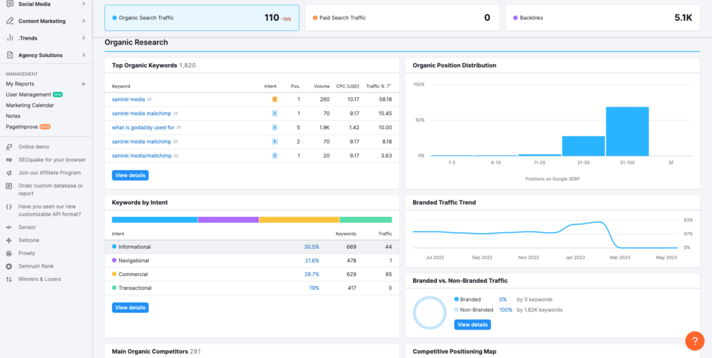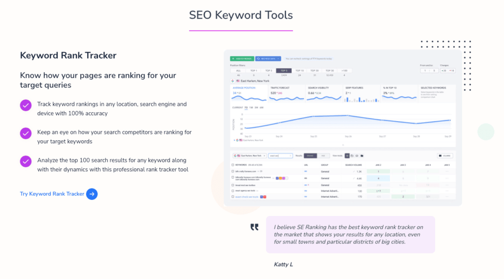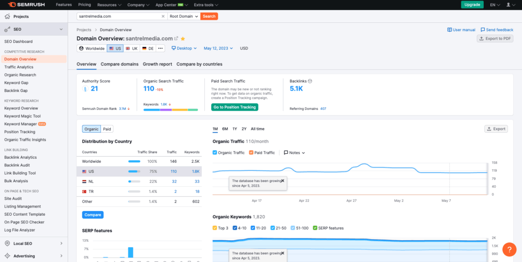 - Rank Tracking: Users can track their website’s rankings for specific keywords and monitor their performance over time. The platform provides data on keyword rankings and SERP features to help users evaluate their SEO efforts.