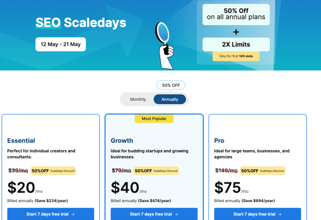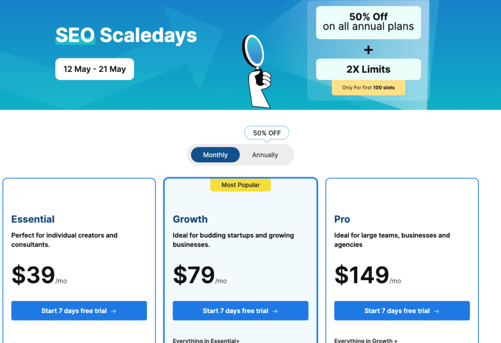 Serpstat occasionally offers discounts for annual subscription plans, allowing users to save on their monthly costs. It’s worth noting that the pricing mentioned here is subject to change, and it’s recommended to visit Serpstat’s official website for the most up-to-date pricing details and any ongoing promotions.