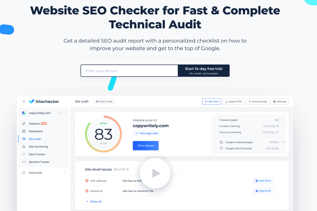 - Site Analysis: SEO tools can help us analyze our website and identify technical issues that may be hurting our ranking, such as broken links, slow loading times, or duplicate content.