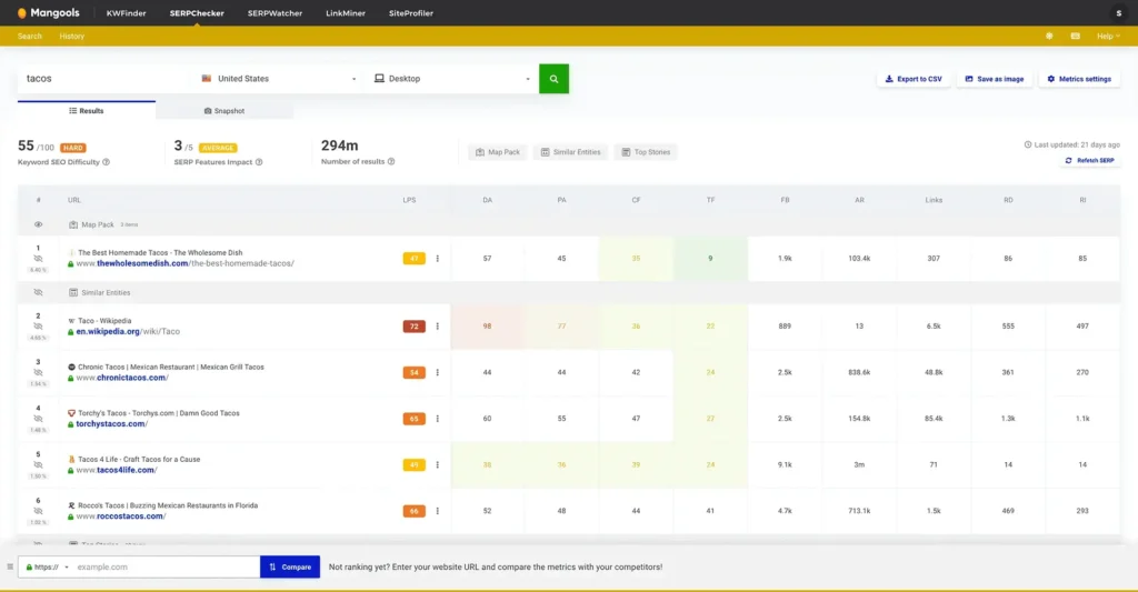 Competitive Analysis: Users appreciate the competitive analysis features of Mangools, which allow them to gain insights into their competitors’ SEO strategies. This helps businesses identify opportunities, benchmark their performance, and refine their own SEO tactics.