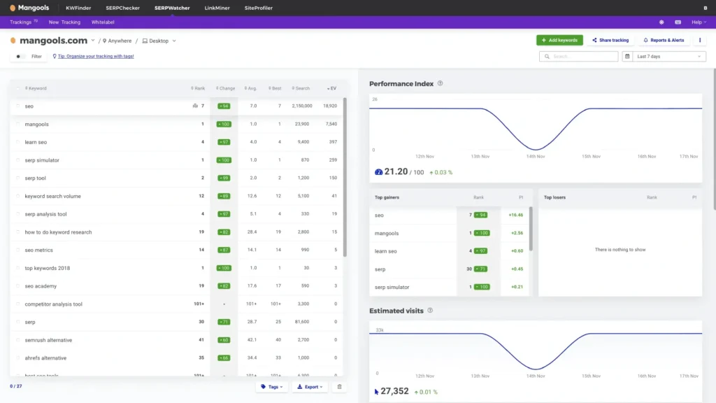 - SERPWatcher Updates: SERPWatcher, the rank tracking tool by Mangools, has undergone several updates to enhance its functionality. This includes improved tracking accuracy, faster data retrieval, and additional insights into search engine rankings and fluctuations.
