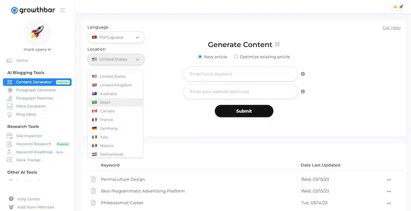 - Integration with popular tools: The platform integrates with popular tools such as WordPress, Slack, and Google Docs to streamline the content creation process.